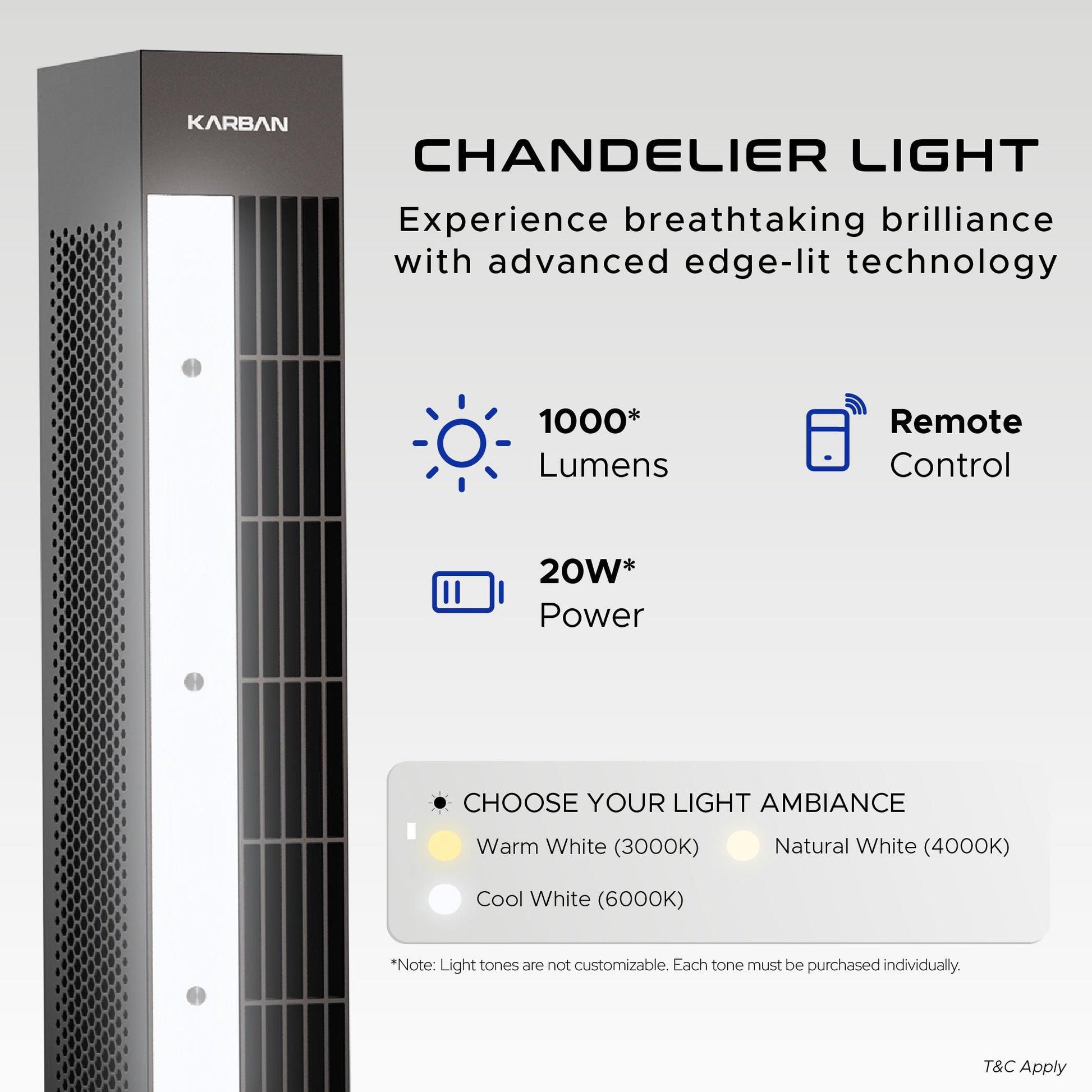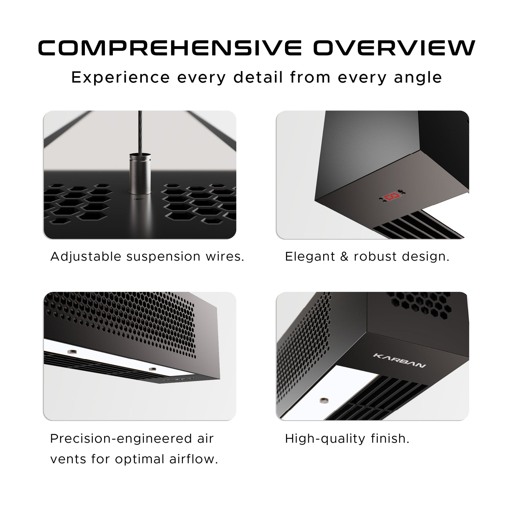 Karban integrates Air Purifier, Bladeless Fan, Chandelier Lights into a single unit. This 3-in-1 design maximizes space efficiency by reducing clutter and is cost-effective, eliminating the need for separate devices and lowering both purchase and operating expenses.
